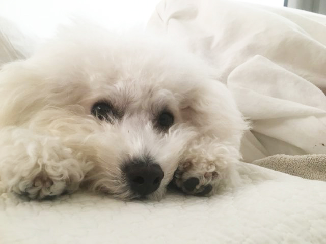 ビションフリーゼの「フー」は甘えん坊でくっつき虫の傾向がありますが、夏は暑いのか、ひとりで離れたところで寝たりするので今のところ、分離不安ではないのかな?